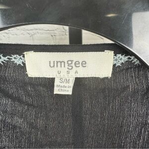 Umgee kimono size small/medium. Open front, oversized. Black kimono with light blue embroidery and cream lace trip. Good condition. Smoke free home.