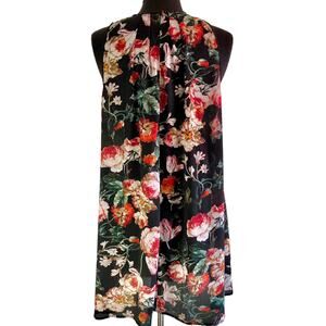 Umgee Black Rose Print Sleeveless Shift Dress MED Soft Girl Casual Vacation Boho