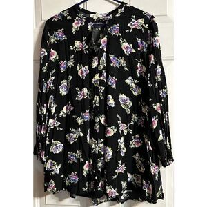 Umgee Black W Floral Long Sleeve Blouse Shirt Top (Poss Dress?) Boho Size Small