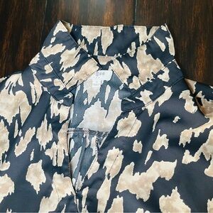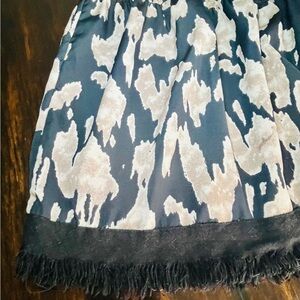 Chic abstract dress by Umgee. Features a striking black and tan pattern and frayed hem. Ideal for versatile styling.