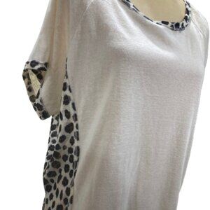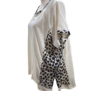 Very cute cream blouse short sleeve with rounded neck and leopard print accent