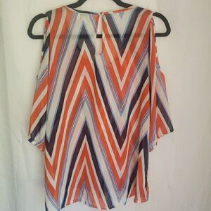 Umgee Blouse Red Navy Blue Stripes Sheer Nautical Sailor Coastal Chic Women Sz S