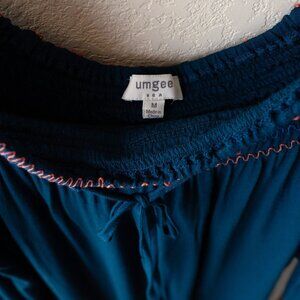 Umgee Blouse Sz M Blue Multicolor Embroidered Floral Smocked Off Shoulder Boho