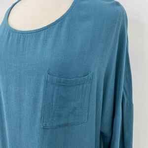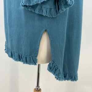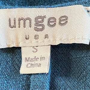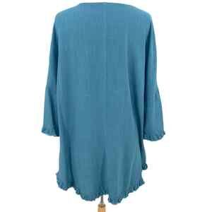 Umgee Blouse Womens Small Blue Linen Cotton Raw Edge Hem Ladies Tunic Top Hi Low
