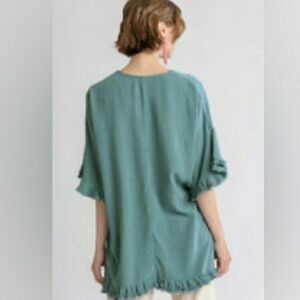 Umgee Blue Linen Blend Tunic Top Sz Small NWOT
