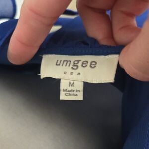 This vibrant blue blouse by Umgee features charming ruffled sleeves and a relaxed fit, perfect for a stylish yet comfortable look. The flowing silhouette and scoop neckline add a touch of elegance to this versatile top.
