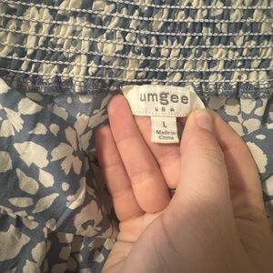 Chic floral midi skirt by Umgee. Features a blue and cream pattern. Perfect for versatile styling.