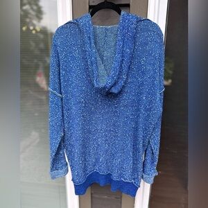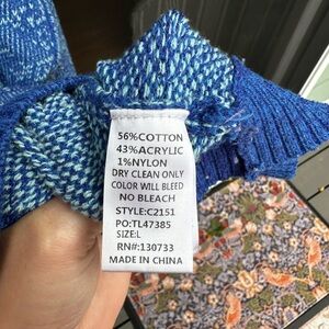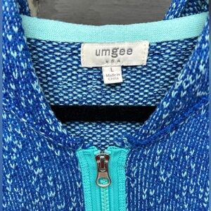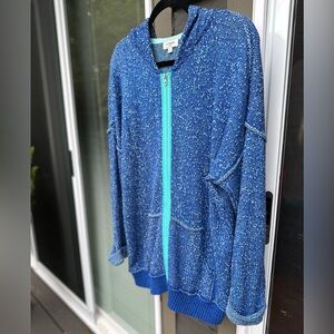 Chic blue knit jacket with a teal zipper. Ideal for everyday comfort.