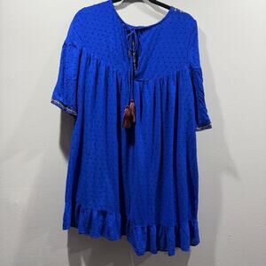 Umgee Bohemean Embroidered Royal Blue Dress Size Large