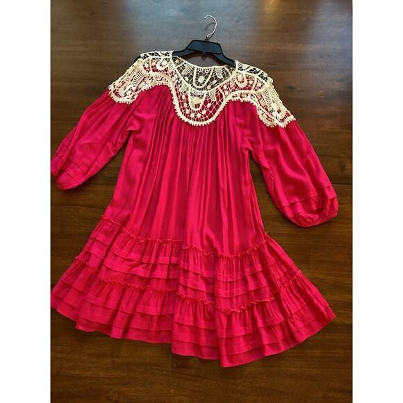 Umgee Bohemian Dress Fuchsia Boho Peasant Crocheted Tiered Sundress Sz Small NWT