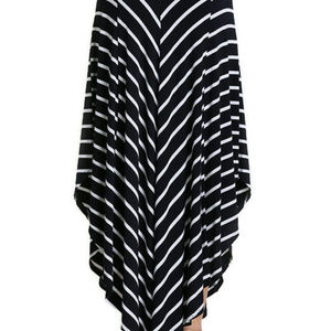 Bohemian Striped Midi Skirt Features a wide waistband, striped pattern, stretchy fabric, asymmetrical hemline , side slits and an A-line midi silhouette. Small waist 26" L 37" : Medium waist 28" L 37.5" : Large waist 30" L 38" : waist measurement taken NOT stretched. 2074