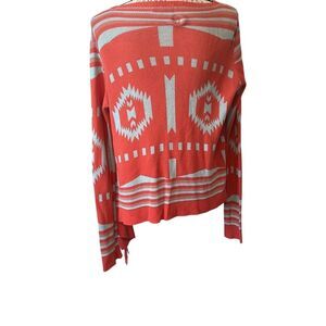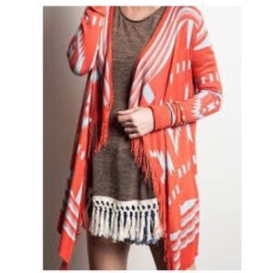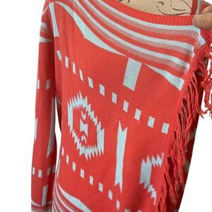Umgee Boho Aztec Orange Blue Fringe Shawl Cardigan Sweater S