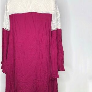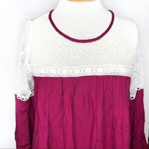 Umgee Boho Bell Sleeve Lace Tunic Wine Red NWT S