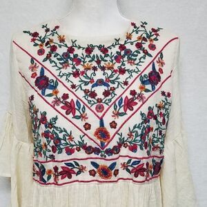 Umgee Boho Bliss Cream Floral Embroidered Dress