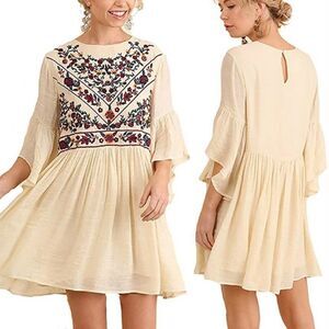 Boho Bliss Cream Floral Embroidered Flare Sleeve dress by Umgee.