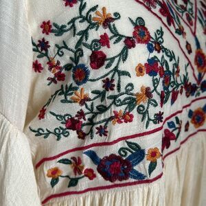Umgee Boho Bliss Embroidered Bell Sleeve Keyhole Back Beige Dress Size L