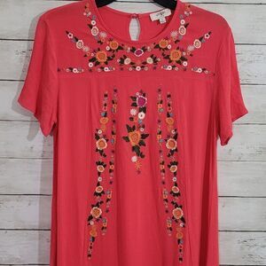 Umgee Boho Floral Embroidered Short Sleeve Tunic / Mini Dress FLAW