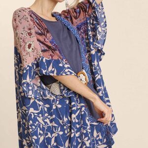 Umgee NWT - Boutique This is a beautiful open front kimono ( Cardigan ) that has an boho style print. It has beautiful blue, and pink florals.