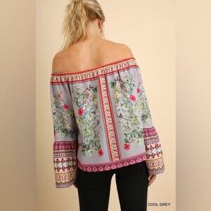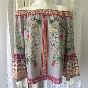 Umgee Boho Off Shoulder Floral Peasant Top Blouse Tunic Bell Sleeves Size M