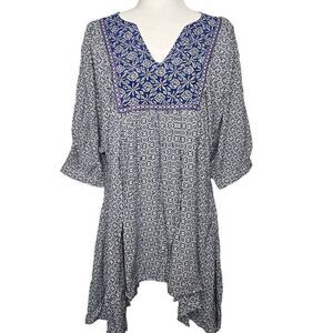 Umgee Boho Sharkbite Hem Tunic Top Oversized Size Small
