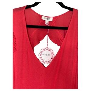 Umgee Burgundy High-Low Ruffle Midi Dress, Long Sleeve, Open Back – L