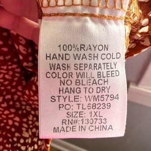 Umgee CURVY Cinnamon Brown Animal Print Babydoll Top. Size 1x.