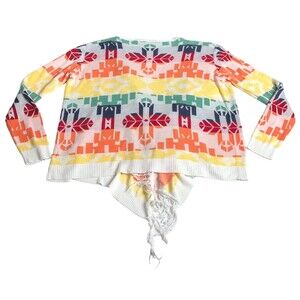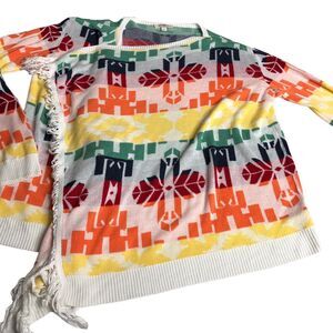 Umgee Cardigan Sweater Womens M Aztec Southwestern Boho Western Open Fringe