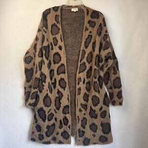 Umgee Cardigan Womens L leopard animal print long duster pockets eyelash mobwife