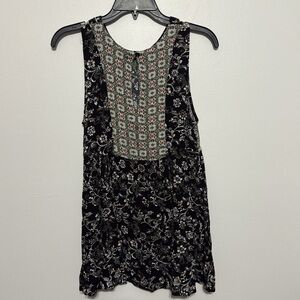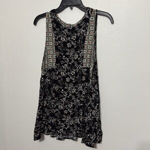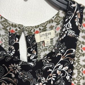 Umgee Chloe, black white and green floral print tank top