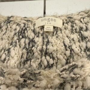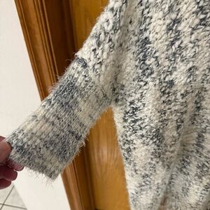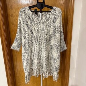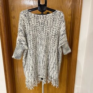 Umgee Chunky Knit Sweater Frayed Hem Oversized White/Gray Poncho Women’s Sz M/L