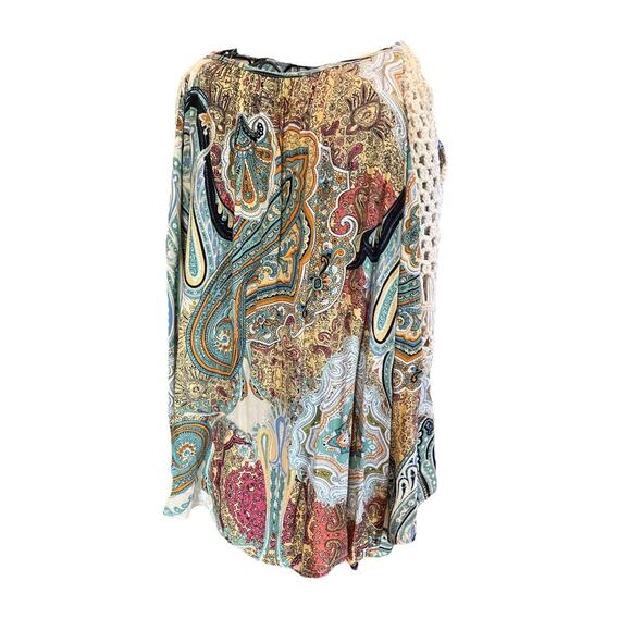 Umgee Cold Shoulder Earth Tones Crochet Sleeve Boho Top Size Medium