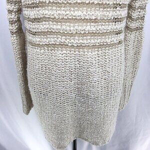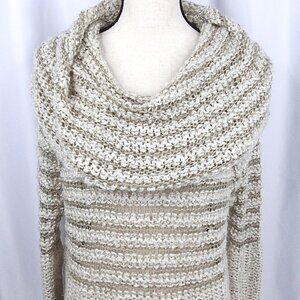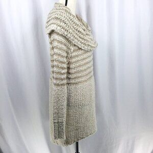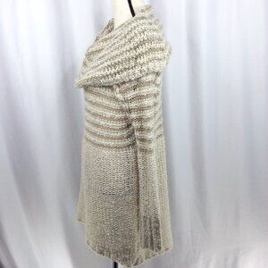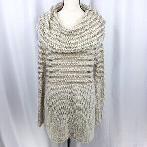 Umgee Cowl Neck Open Weave Tunic Sweater Womens Size Medium Beige Mini Dress
