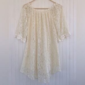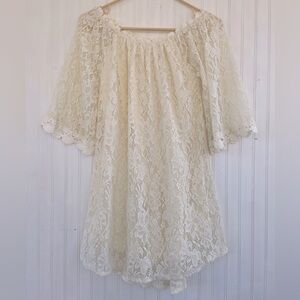Umgee Cream Lace Long sleeve Shift Dress Size Small