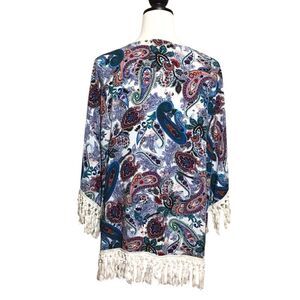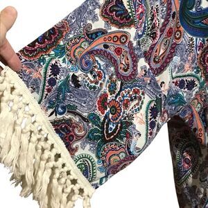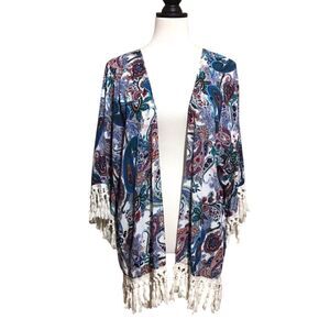 Umgee Cream Paisley Boho Fringe Kimono Cardigan M/L