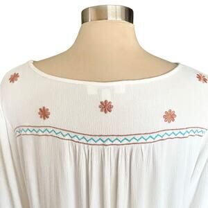 Umgee Cream Tunic Top Turquoise Rust Aztec Embroidery MEDIUM Peasant Gypsy