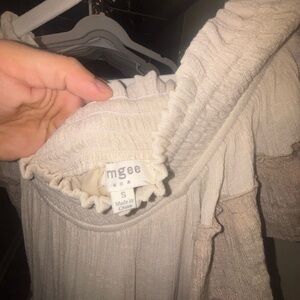 Stylish maxi dress with ruffled sleeves. Features cream, tan, and pink color blocks. Ideal for casual wear.