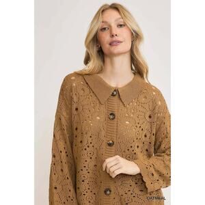 Umgee Crochet Button Down Long Sleeves Oversized Casual Knit Cardigan | Oatmeal