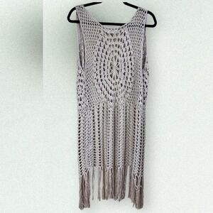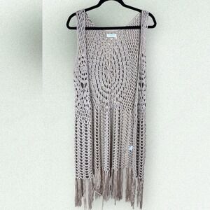 Umgee Crocheted Floral Sleeveless Kimono, Tan, OS