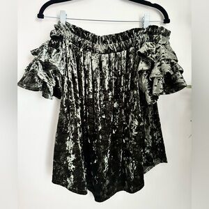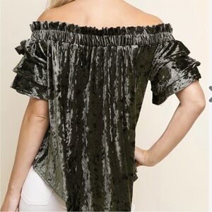 Umgee - Crushed Velvet Emerald Olive Green off the shoulder Top large