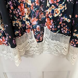 Umgee Dark Floral Boho Kimono Cardigan Size M/L Open Front Crochet Trim Festival