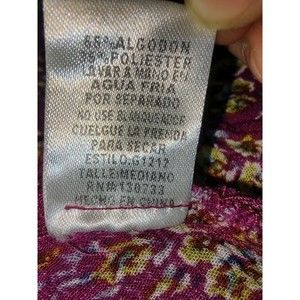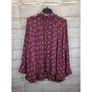 Umgee Dark Pink Floral Print Button Down, Layered Relaxed Fit Blouse, Size Med