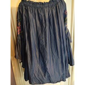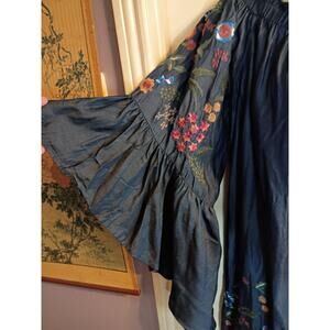 Umgee Dress Blue Embroidered Flared Sleeves Sz L On Or Off Shoulder Boho Fairy