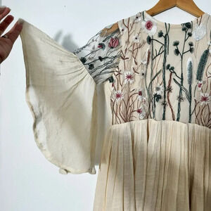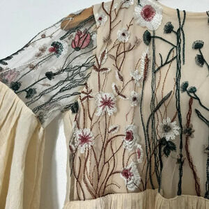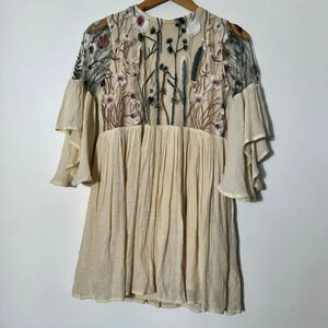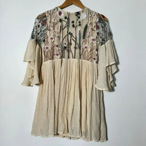 Umgee Dress Women Small Ivory Ebroidered Babydoll Mesh Overlay Crepey Lined Boho