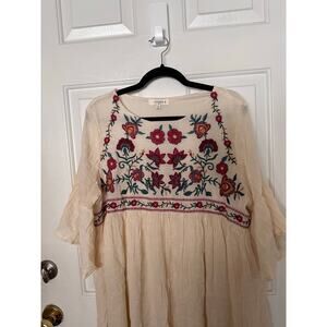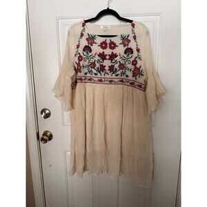 Umgee Dress Womens 1XL Boho Bliss Embroidered Flared Sleeve Mini Babydoll Cream