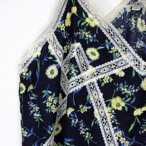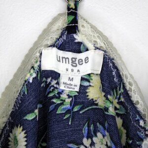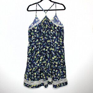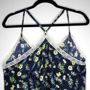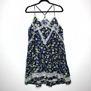 Umgee Dress Women's Size Medium Navy Blue Floral with Lace Spaghetti Strap