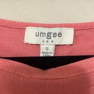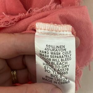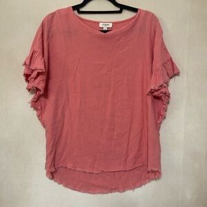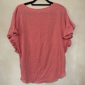 Umgee EUC coral ruffle raw hem relaxed fit linen blend casual blouse size S