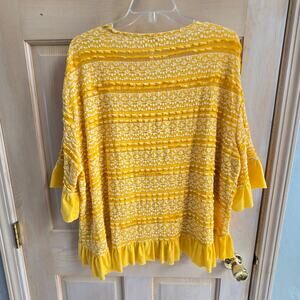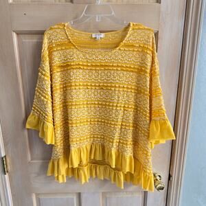 Umgee EUC ruffle bell sleeve oversized top blouse Medium Butterscotch yellow