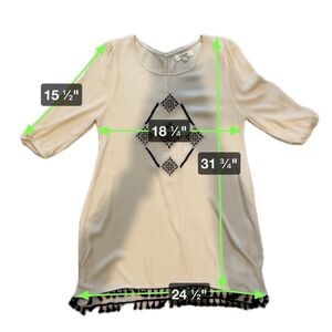 Umgee Eggshell White Long Sleeve Midi Dress with Navy Embellishments Size Medium