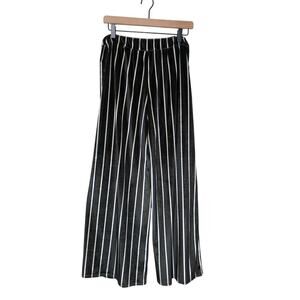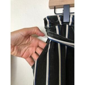 Umgee Elastic Waist Striped Wide Leg Velvet Pants Green White Boho Slouchy