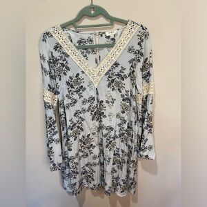 Umgee Embroidered Mini Swing Dress Blue Floral Bohemian Gypsy Cottagecore sz S